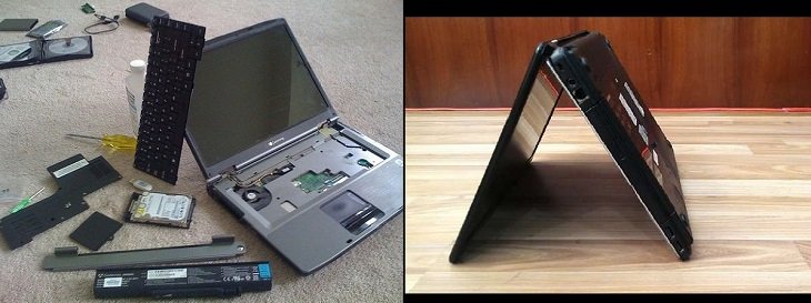 Đây được cho là bước khó khăn nhất, bởi bên trong laptop có rất nhiều các bộ phận khác nhau, nếu không biết cách tháo có thể bạn không cứu được máy mà còn làm hỏng máy tính của bạn. Đầu tiên bạn cần tháo pin ngay từ khi bị nước đổ vào laptop. Tiếp theo đó, bạn lần lượt tháo rời phần bàn phím, khung viền màn hình, ổ cứng và cả ổ quang, tiếp tới RAM và cuối cùng là bo mạch chủ.